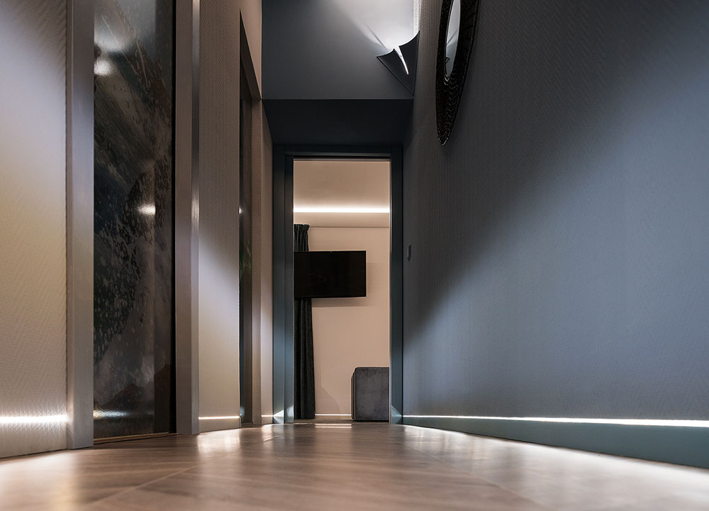 SYNTESIS® PLANO SL wurde für eine elegant-moderne und bewusst minimalistische Gestaltung von Wohnräumen konzipiert. Das spezielle Aluminiumprofil ermöglicht eine wandflächenbündige und überstandslose Installation der Fußleiste. Das Sockelleistenprofil ist für Trockenbau- und Massivwände lieferbar.