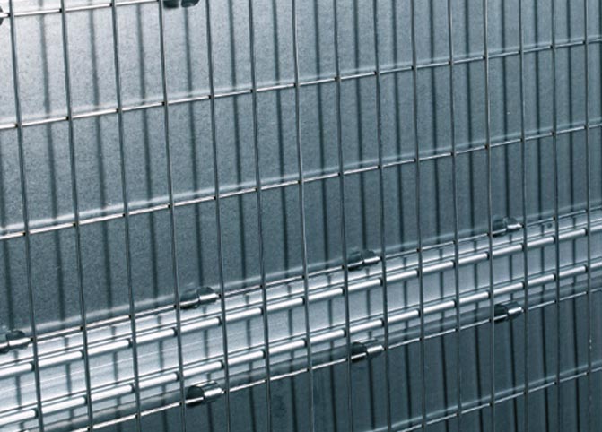 Der neu entwickelte geriffelte Putzträger. Das neue, feinmaschige ECLISSE-Putzträgernetz aus geripptem Draht verbessert den Verbund des Zementmörtels (Putz) mit dem Körper des Schiebetürkastens.